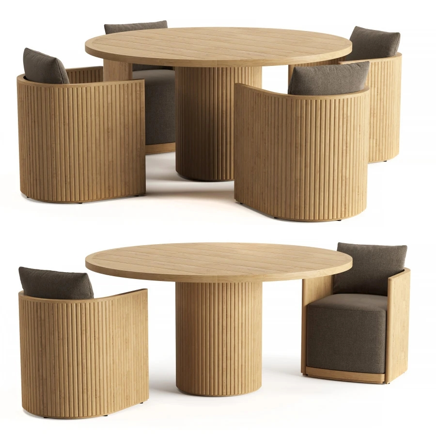 Through the designer's ingenious craftsmanship, the natural grain of the teak wood becomes the most distinctive decorative feature of the furniture. The surfaces of the dining table and chair frames are meticulously sanded to achieve a silk-like smoothness. Over time, the teak will naturally oxidize to develop an amber patina, imparting a timeless elegance to the furniture. Each grain tells a story of nature and time, infusing the dining space with an unparalleled, distinctive texture.