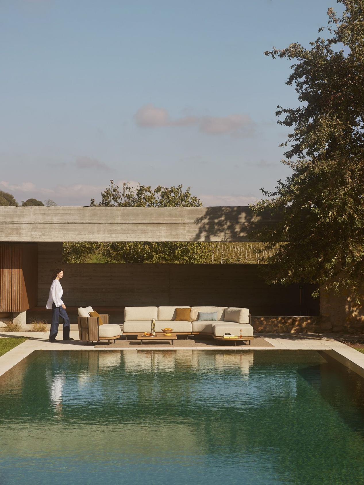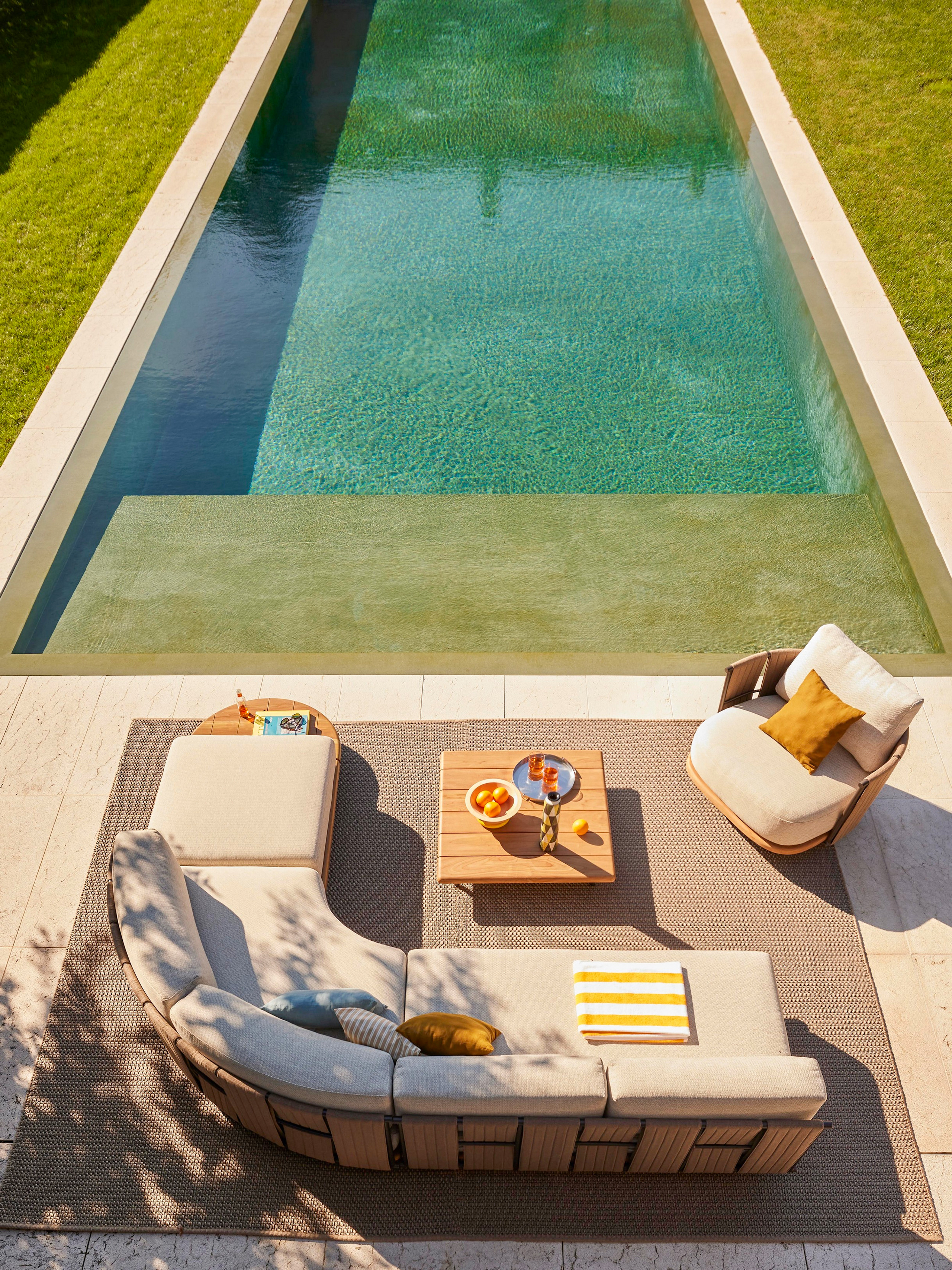 Premium Teak: The frame is made of high-quality teak, renowned for its durability and corrosion resistance, which withstands all weather conditions, ensuring the long-lasting use of the sofa. The natural grain and color of teak add a natural and warm atmosphere.